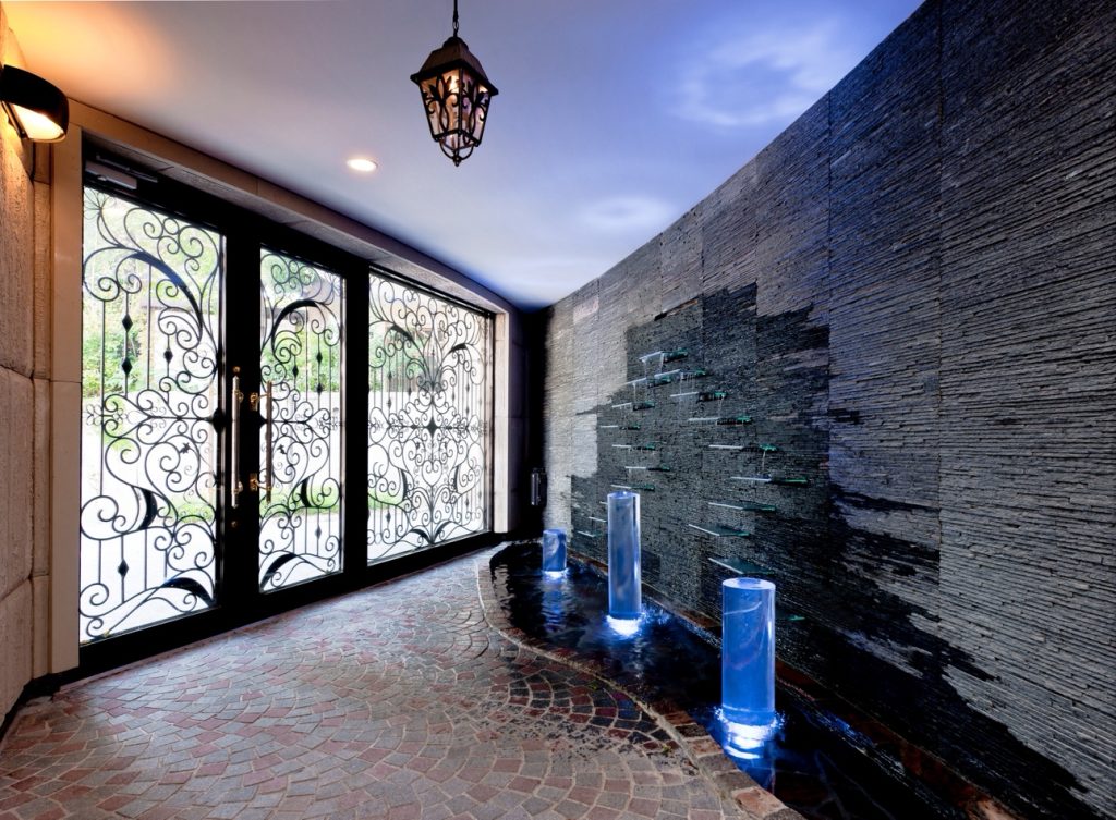 中央には水盤を設け、流れる水の音やライトアップが空間のアクセントに。昼は明るい光が中庭全体を照らし、夜は陰影が幻想的に広がるため、時間帯によってまったく違う表情を楽しめます。山川設計ならではの曲線設計と光の扱いにより、日常の中に上質なリラックスをもたらす中庭となりました。